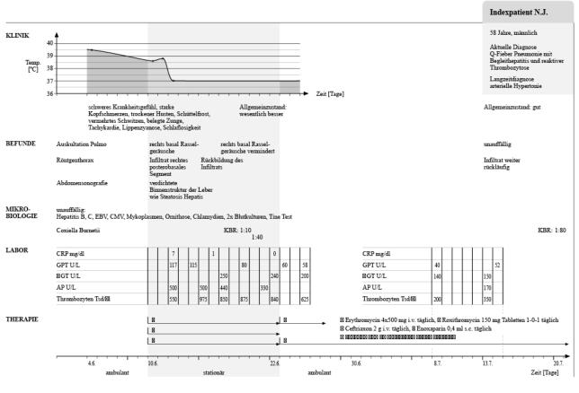 Zeitleiste mit dem Gesundheitszustand des Patienten
